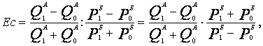 где Q0 и Q1 -предложение до и после изменения цены; Р0 и Р1 - цены до и после изменения; «s» в индексе означает эластичность предложения.