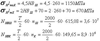 -число эквивалентных циклов нагружений для шестерни и колеса:
