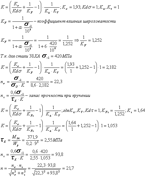 Таким образом условие прочности выполняется: n=21,7>[n]=1,5 1,7
