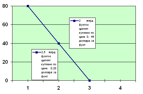 Как таблица, так и график показывают величину спроса на цыплят при различных ценах. Например, по цене 0,40 доллара за фунт покупатели желают и могут приобрести 2 млрд. фунтов цыплят в год. Этой' комбинации цены и количества соответствует ряд А в части (а) и точка А в части (б).