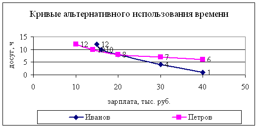На основании приведенных в таблице сочетаний дневной зарплаты и дневного свободного времени (досуга) двух работников определить: