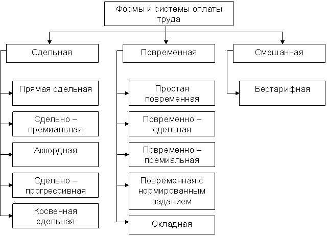 Различают денежную и не денежную формы оплаты труда. Основной является денежная форма, что обусловлено ролью денег как всеобщего эквивалента в товарно-денежных отношениях субъектов рынка. Вместе с тем, оплата труда в той или иной степени осуществляется в натурально-вещественной форме или в форме предоставления дополнительного оплачиваемого отпуска. Так, для оплаты труда при отсутствии наличных денег предприятия рассчитываются с работниками производимой продукцией, которая непосредственно потребляется ими либо продается или обменивается на другие товары. Что касается оплаты труда оплачиваемым свободным временем, то данная форма, стимулируя интенсивный и качественный труд, позволяет работнику использовать это время для учебы, отдыха или для получения дополнительного заработка.