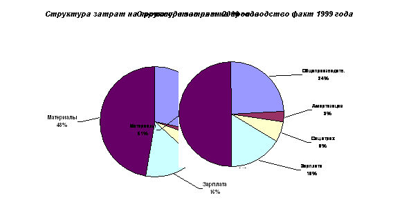 Рисунок 1. Плановая и фактическая структура затрат на производство.