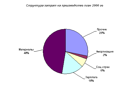расходы выросли по отношению к этим показателям, материальные затраты ниже уровня 1999года, но выше плана, амортизация основных средств ниже уровня 1999года (рис.1).