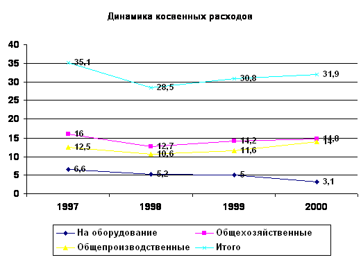 В процессе последующего анализа выясним основные причины, вызвавшие абсолютный и относительный рост косвенных расходов. По своему составу это комплексные статьи, они состоят, как правило, из нескольких элементов затрат.