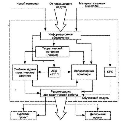 Обучающий модуль — это логически завершенная форма части содержания учебной дисциплины, включающая в себя познавательный и профессиональные аспекты, усвоение которых, должно быть завершено соответствующей формой контроля знаний, умений и навыков, сформированных в результате овладения обучаемыми данным модулем.