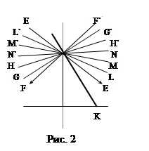2. две прямые, содержащиеся в одной плоскости (рис. 2), либо пересекаются в одной точке (такие прямые Лобачевский назвал «сходящимися»), либо не пересекаются, имея общий перпендикуляр, по обе стороны от которого они друг от друга удаляются («расходящиеся прямые» в терминологии Лобачевского), либо не пересекаются, удаляясь друг от друга в одном направлении и асимптотически приближаясь в другом (параллельные Лобачевского).
