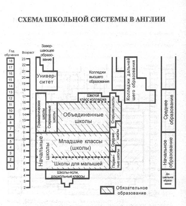 Таким образом система образования Англии включает в себя: