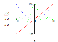 ПРИМЕР 2 Построить графики трех функций,зависящих от одной переменной х, в пределах одного графического блока: