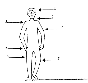 А советский психолог А. Н. Леонтьев прямо предупреждал, что в некоторых случаях наглядность вообще бесполезна, иногда даже вредна для обучения. Следует быть предельно внимательным и осторожным. Например, при изучении темы Clothes. Конечно, легко обнаружить предметы одежды на учениках в классе, но не следует указывать на них, так как ребенок может почувствовать себя дискомфортно. Вторым исключением является лексика типа man, woman , boy, girl .Довольно нелепо указывать на учеников и говорить ''He is a boy, she is a girl'' . Из-за тех же причин учителя педпочитают обычно использовать картинки для введения лексики parts of the body, в этом случае оптимально применить схему-иллюстрацию такого вида.
