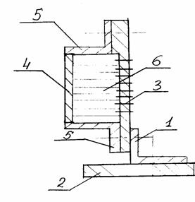 1 – технологический профиль; 2 – приспособление для сборки и склеивания воздухозаборника – плита; 3 – перфорированная обшивка; 4 – неперфорированная обшивка; 5 – упор; 6 – сотовый заполнитель
