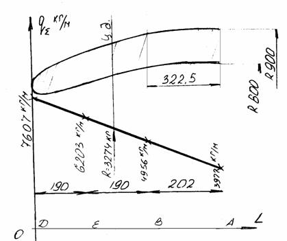 Распределение суммарной погонной нагрузки в точках Д, С, В, А определяем как: