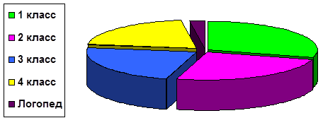 Опрос проводился среди всех учителей начальной школы, поэтому присутствуют представители всех классов, а также в опросе принял участие один логопед, который в момент опроса выполнял роль учителя и классного руководителя. Логопед отвечал на вопросы анкеты с точки зрения своей работы, поэтому эти ответы будем обговаривать отдельно.