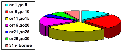 Следующий актуальный вопрос анкеты: педагогический стаж учителей. Среди опрашиваемых в Литве учителей больше всего оказалось со стажем от 11 до 15 лет – 5, и со стажем от 15 до 20 лет – 5. По 3 – со стажем от 1 до 5, от 6 до 10, от 25 до 30. Следует отметить, что самый маленький стаж 1,5 года, а самый большой 31 и 32 года работы в школе. Если учесть, что высшее учебное заведение заканчивается в 22 года, то средний возраст опрошенных учителей 30 – 40 лет.
