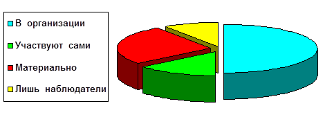 Помогают в организации Участвуют сами Помогают материально Лишь наблюдатели |