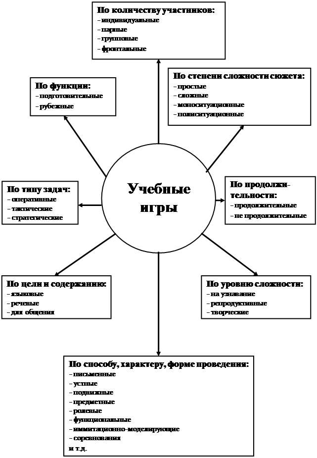Деркач отмечает, что отличительной чертой всех учебных игр является их коммуникативная направленность и обусловленность.