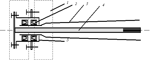 1-колесо; 2-подшипники; 3-кожух полуоси;4- полуось;5-ступица колеса.