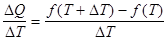 для данного вещества не является постоянным. Таким образом, для данного вещества количество теплоты Q есть нелинейная функция температуры T: Q = f(T). Тогда ΔQ = f(t + ΔT) - f(T). Отношение