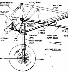 Шасси классическое трехточечное, с хвостовым колесом. Две основные стойки с гидропневматическими амортизаторами "Виккерс" крепились к переднему лонжерону центроплана. Гидравлика складывала их вдоль крыла по направлению к оси самолета. В закрытом положении стойку и часть колеса в нише прикрывал специальный щиток, закрепленный на стойке. Аварийно шасси выпускалось ножным насосом, стоявшим в кабине у левой педали. На основных колесах стояли пневматические тормоза "Данлоп".