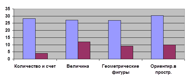 Результаты исследований математических представлений у детей 4-5 лет по всем параметрам до эксперимента.