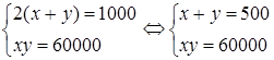 Пусть длина участка – х, ширина – у. Так как участок надо огородить забором длиной 1000м. Так как площадь участка 60000 м2, то составим уравнение: ху=60000. Получим систему: