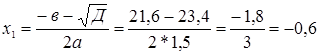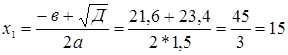 Д=в2-4ас=(-21,6)2-4*1,5*(-13,5)=466,56+81=547,56>0
