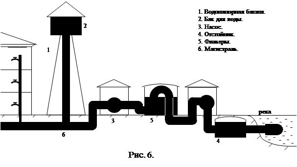 1. Назвать основные части системы водопровода и найти их на схеме, указать значение (см. рис. 6).