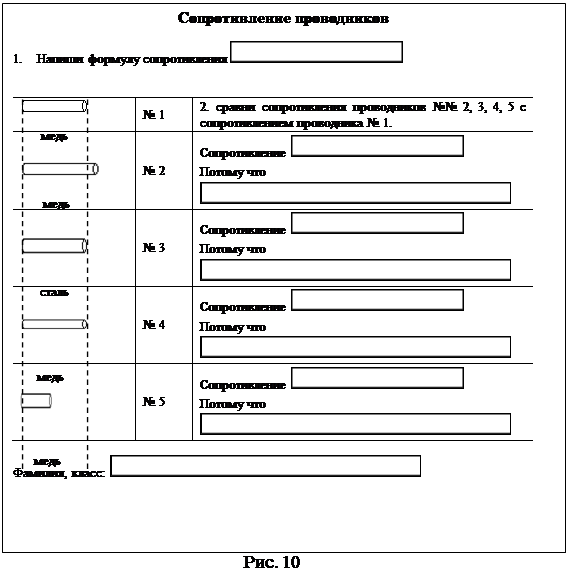 Вот, например как выглядит такая карточка для урока в 10 классе на тему «Сопротивление проводников» (рис. 10).