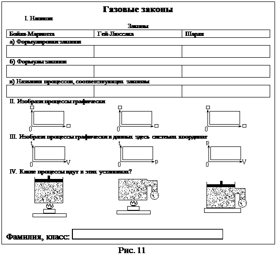 Вот, например, карточка «Газовые законы» (рис. 11).