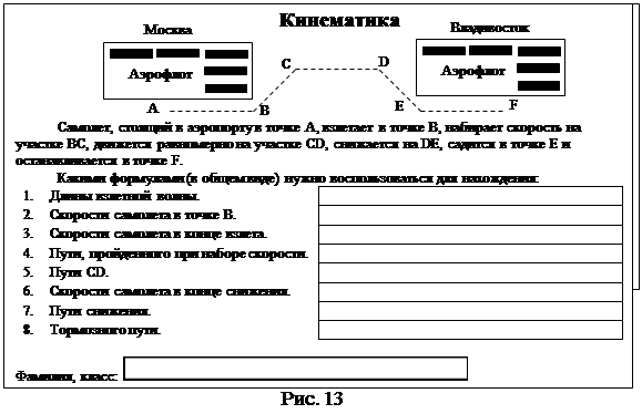 Карточки первого типа применяются для контроля теоретических знаний учащихся. К ним относятся, например, карточка «напряженность электрического поля» для девятиклассников (рис. 12). Карточки этого типа могут быть и другого содержания: они не могут включать заданий на объяснение явлений и построение графиков, количественные задачи, качественные вопросы на проверку правил включения и знания принципов действия измерительных приборов.
