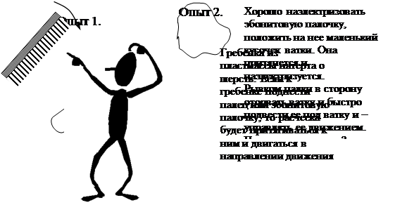 машина, теннисный шарик, стакан, расческа, бумажные человечки, провода соединительные, эбонитовая палочка.