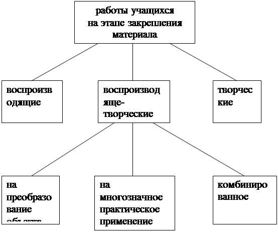 Приведём примеры работ воспроизводящего и творческого характера, используемых при обучении умениям и навыкам.