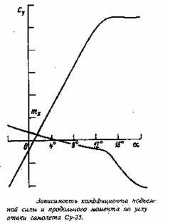 - благоприятное протекание зависимости продольного момента по углу атаки, что препятствует выходу на большие закритические углы атаки и, тем самым, повышает безопасность полета;