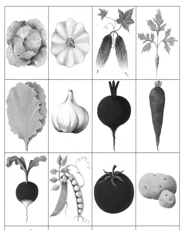 Ход игры. У детей большие карты (по одной), у ведущего — маленькие карточки. Ведущий поднимает маленькие карточки, а дети должны узнать свою картинку и назвать ее. Выиграет тот, кто первым соберет свои картинки. В конце игры нужно назвать одним словом все свои картинки.