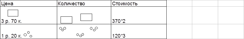 В данном задании учащимся предлагают на основе предложенных рисунков сделать вывод о взаимосвязи трёх величин: цены, количества и стоимости.