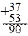 3) Складываю десятки: 3 + 5 = 8, да еще 1: 8 + 1 = 9; пишу под десятками 9;