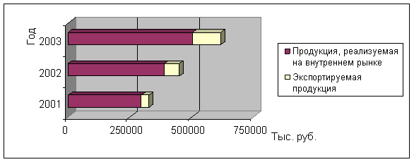 Данные, приведенные в таблице, свидетельствуют о том, что ежегодно происходит прирост продукции, отправляемой на экспорт. В 2002 году по сравнению с 2001 годом доля экспортируемой продукции от общего числа произведенной КПП увеличился на 4%, в 2003 году увеличение доли экспорта КПП составило уже 5%.