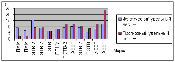 На ОАО «Псковский кабельный завод» ситуация осложняется тем, сто номенклатура выпускаемой продукции достаточно обширна (ассортиментный перечень насчитывает около 500 наименований кабельно-проводниковой продукции различных марок и типоразмеров), завод оснащен большим количеством оборудования различного профиля и назначения. Поэтому целесообразно совершенствовать структуру выпуска только той продукции, удельный вес которой в общем объеме выпуска достаточно высок.