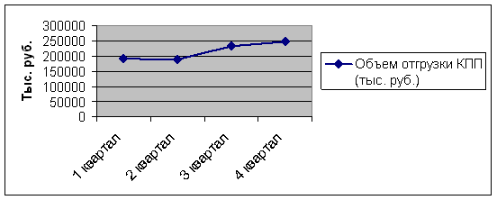 Рис. 1.2. Изменение объемов продаж КПП за 1-4 кварталы 2003 года.