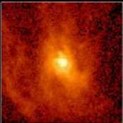 Успешное объяснение ряда явлений с помощью модели Большого взрыва привело к тому, что, как правило, не вызывает сомнения реальность происхождения микроволнового фонового излучения из расширяющегося первичного огненного шара в тот момент, когда вещество Вселенной стало прозрачным. Возможно, однако, что это слишком простое объяснение. В 1978 г., пытаясь найти обоснование для наблюдаемого соотношения фотонов и барионов (барионы - «тяжелые» элементарные частицы, к которым, в частности, относятся протоны и нейтроны) - 108:1, - М.Рис высказал предположение, что фоновое излучение может быть результатом «эпидемии» образования массивных звезд, начавшейся сразу после отделения излучения от вещества и до того, как возраст Вселенной достиг 1 млрд. лет. Продолжительность жизни этих звезд не могла превышать 10 млн. лет; многим из них было суждено пройти стадию сверхновых и выбросить в пространство тяжелые химические элементы, которые частично собрались в крупицы твердого вещества, образовав облака межзвездной пыли. Эта пыль, нагретая излучением догалактических звезд, могла, в свою очередь, испускать инфракрасное излучение, которое в силу его красного смещения, вызванного расширением Вселенной, наблюдается сейчас как микроволновое фоновое излучение.