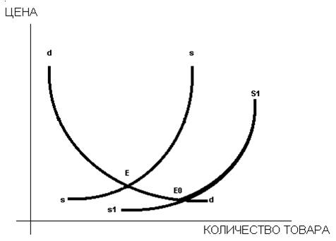 На рисунке 4 данный процесс иллюстрируется сдвигом кривой предложения вправо вниз к точке нового равновесия, которому соответствуют более низкая цена и возросший уровень продаж. В процессе движения кривой от ss к s1s1 обостряется конкурентная борьба, разоряются производители с наиболее высокими затратами труда и капитала на единицу продукции.