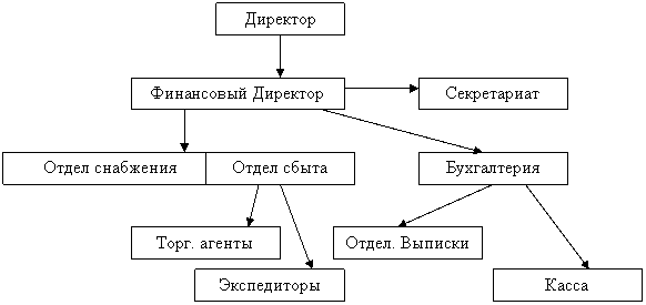 Отдельно выделен бухгалтерский отдел. По сути, этот отдел состоит из главного бухгалтера, кассира и двух человек, оформляющих документы. В обязанности главного бухгалтера входит ведение бухгалтерского учета, формирование отчетов для налоговой инспекции, начисление налогов, решение всех вопросов связанных с налоговой отчетностью и др. Кассир принимает выручку у экспедиторов. Два человека оформляют документы по движению товара.