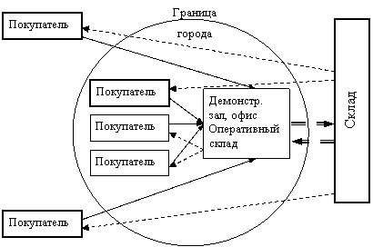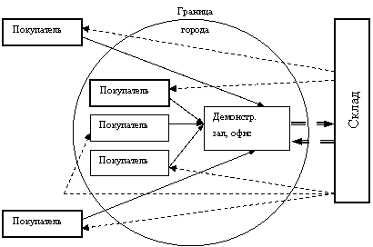 Демонстрационный зал и офис находятся в территориальном удалении от складских помещений (как правило, офис – в центре города, склад – за чертой города). Такое решение организации оптовой торговли обусловлено следующими факторами: