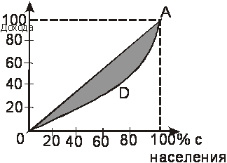Чем больше заштрихованная площадь, тем больше коэффициент неравенства в обществе.