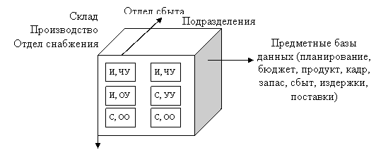 И – предметная база данных, используется в конкретном процессе и на конкретном участке, С – предметная база данных, создается в конкретном процессе работы на конкретном участке. Ключи полномочий: ОО – руководитель подразделений основной ответственный за процесс, ОУ – подразделение основной участник процесса, ЧУ – частичное участие подразделения в процессе.