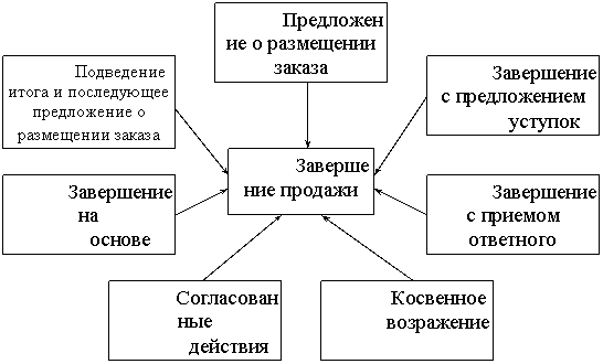 Сколько бы успешным ни были этапы процесса продажи, все равно в душе покупателя остается тень сомнений. Это чаще проявляется в желании отложить момент решения. Практика сбыта свидетельствует, что если покупатель откладывает покупку хотя бы до завтра, то весьма вероятно, что он отправиться к конкуренту. Пока он рядом, у продавца есть реальное преимущество перед конкурентами, и его важнейшая задача – совершить сделку. Почему же в таком случае некоторые продавцы неохотно завершают продажу? А все дел в том, что большинство людей боится отказа. Завершая сделку, покупатель должен сказать «да» или «нет». Иногда это будет «нет», и продавец в таком случае отвергнут. Незавершенная же продажа воспринимается менее болезненно, чем отказ. Поэтому главное в чем надо убедить себя – не следует боятся завершать продажу. Надо спокойно реагировать на отрицательное решение некоторых покупателей. Ведь гораздо больше их скажут «да».