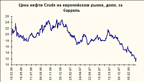 Оценки дальнейшего развития ситуации достаточно противоречивы, однако наиболее вероятным сценарием выглядит некоторая стабилизация на нынешнем ценовом уровне $ 12.5 за баррель с последующим возобновлением роста цен во втором квартале. Оптимизм внушает та степень тревоги, которая охватила ведущие страны-экспортеры и начавшийся активный поиск выхода из сложившейся ситуации. Помимо усиления политической активности руководителей заинтересованных стран и крупнейших нефтяных компаний, положительную роль сыграют и чисто экономические сезонные факторы - загрузка простаивающих в настоящий момент (по технологическим причинам) нефтеперерабатывающих заводов в Европе; закупки нефтепродуктов США для пополнения стратегического запаса.