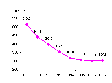 - благоприятных климатических условий зимнего периода 1997/98 гг., вследствие чего оказались не растраченными ранее накопленные крупные стратегические запасы;