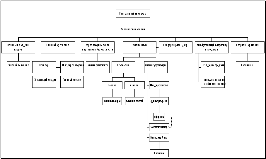 Информационные системы, существующие в гостинице, обьединяют самые различные ее службы. Таким образом в начале должна существовать некоторая формальная структура или внутренняя организация, которая с одной стороны будет координировать усилия работников для достижения цели и миссии организации и с другой стороны позволит использовать достижения научно-технического прогресса для сокращения времени на выполнение различного рода операций. Прежде чем проектировать ИС необходимо четко знать подчиненность и связи внутри предприятия. Организационная схема - это наиболее наглядный способ представления этой информации. Классик менеджмента Анри Файоль сформулировал следующие принципы создания хорошей организации.