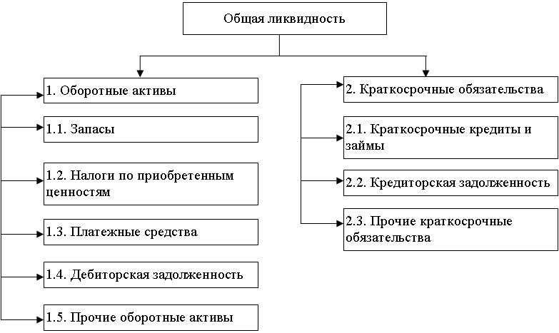 Рис. 4. Структурно-логическая модель факторной системы коэффициента общей ликвидности